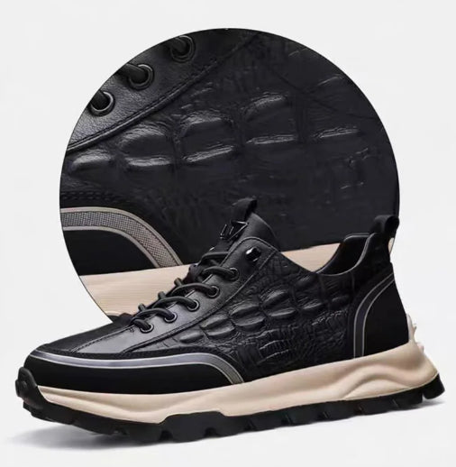 Diese Schuhe mit ihrer von Krokodilen inspirierten Textur vereinen Stil und Haltbarkeit. Ihre gut gestaltete Zwischensohle und Gummisohle sorgen den ganzen Tag über für optimalen Komfort, während ihre saubere Verarbeitung ihnen bei verschiedenen Anlässen eine elegante Note verleiht.