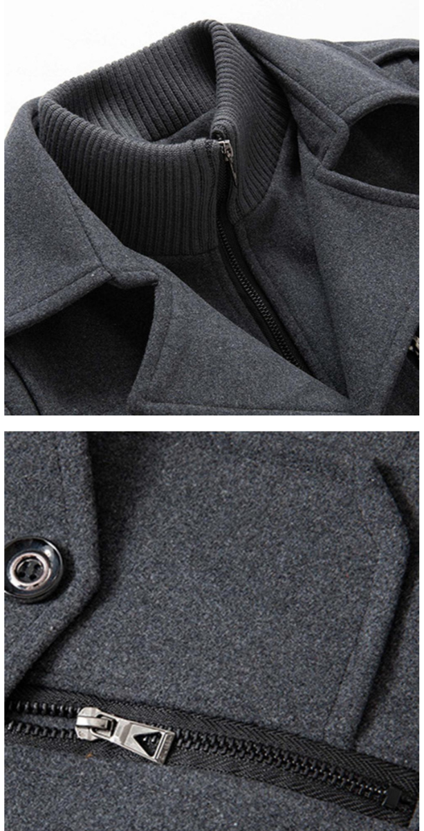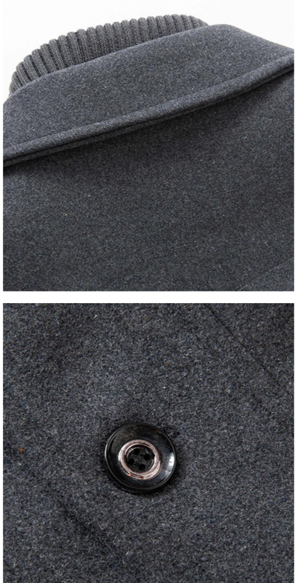 Herrenmantel mit strukturiertem Design und integriertem Stehkragen, der vor Kälte und Wind schützt. Es ist aus dickem Stoff gefertigt und sorgt für thermischen Komfort und Haltbarkeit. Der doppelte Verschluss mit Knöpfen und Reißverschluss garantiert eine bessere Passform und optimale Isolierung.