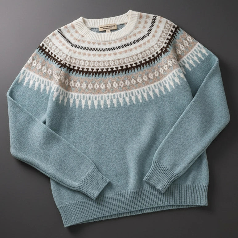 Motif géométrique unique : design hivernal travaillé, avec détails précis et couleurs fidèles